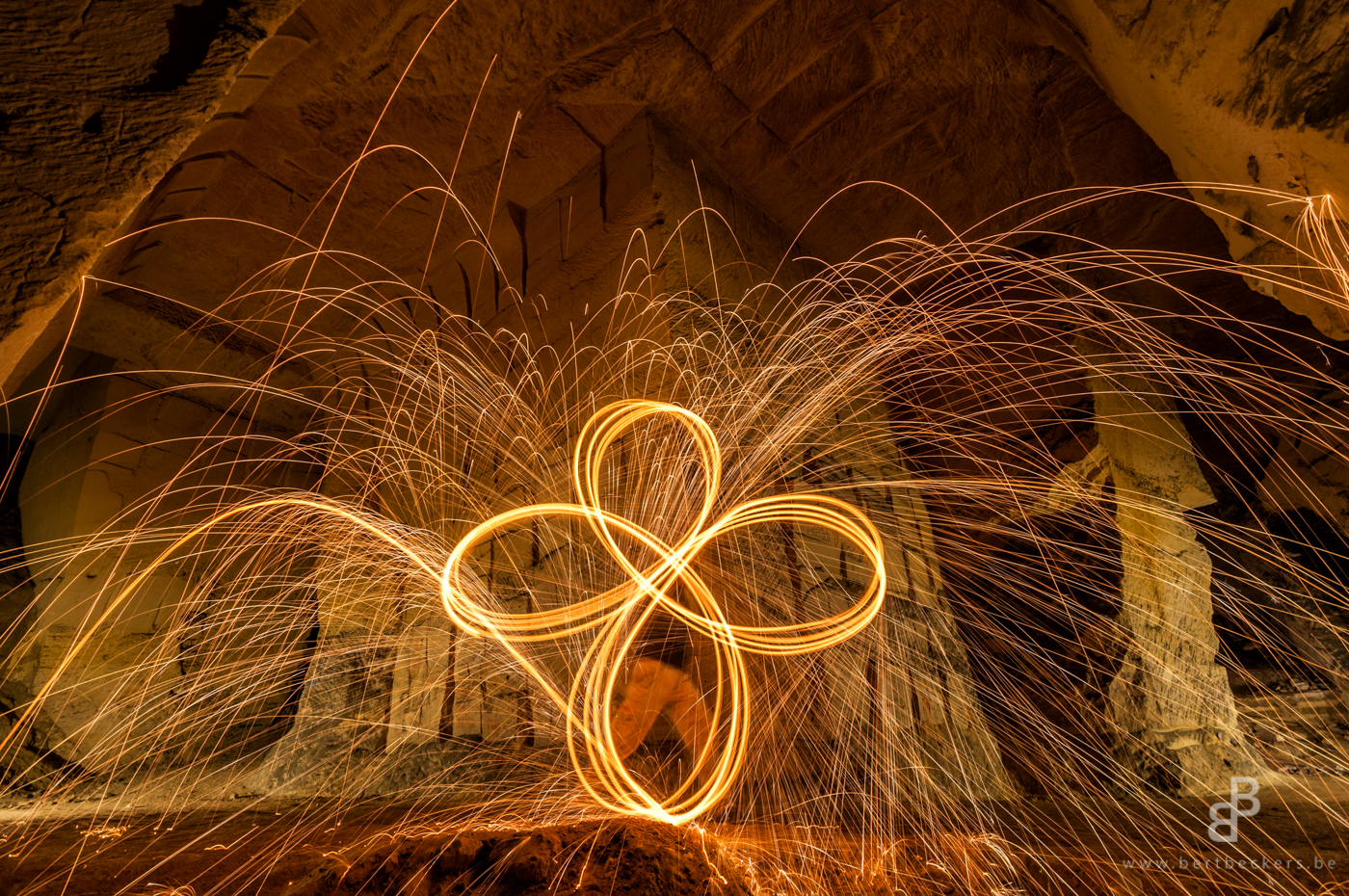 Lightpainting with burning steelwool has become quite popular the last decade amongst photographers. However you always see the same old boring circles when this is performed. Together with Wijnand Buijs, an experienced fire performer, we went back to the caves and experimented with different shapes, ending up with these beautiful sparkle flowers.